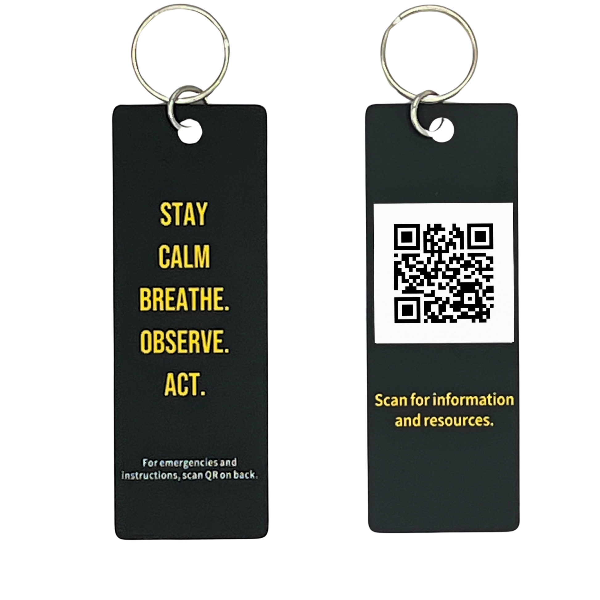 QR Keychain Tag — discreet visual cue that links to tools and reminders anytime