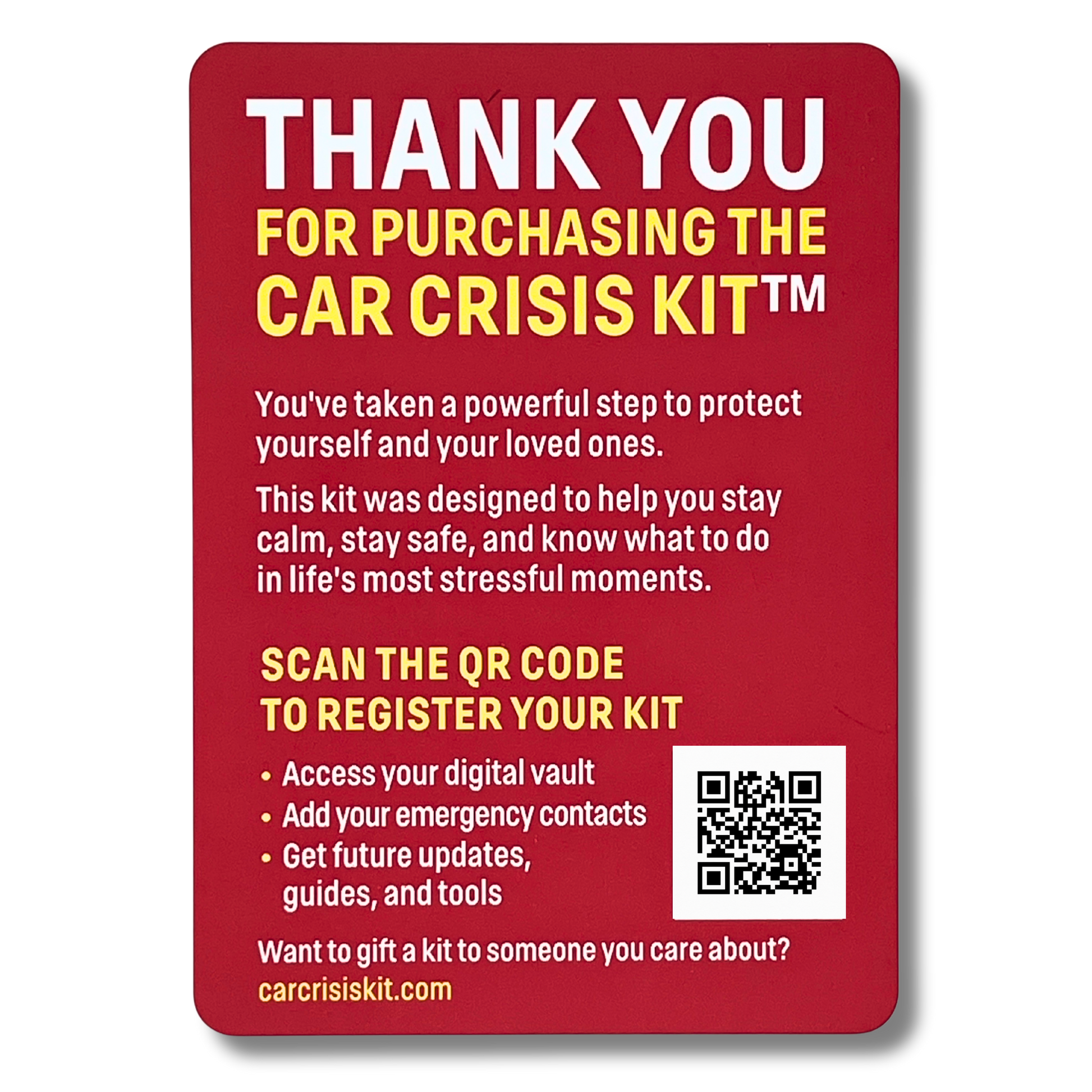 Whether you’re pulled over or involved in an accident, the Car Crisis Kit™ keeps you calm, clear, and prepared.